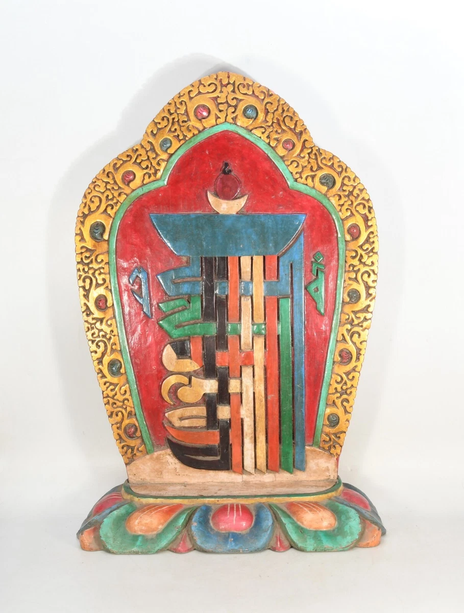 Kalachakra Mantra Carved Wooden Antique Wall Hang Tibetan