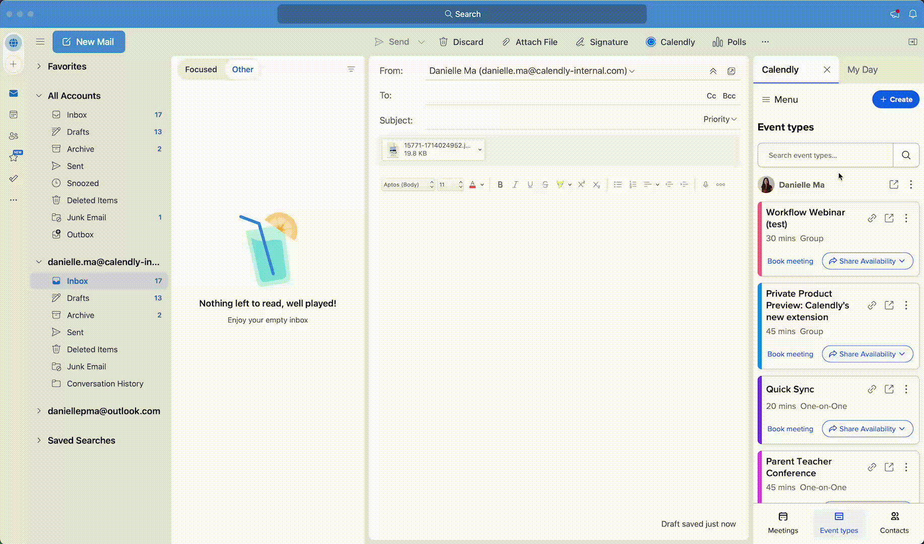 Schedule Calendly meetings right from your inbox with the Outlook