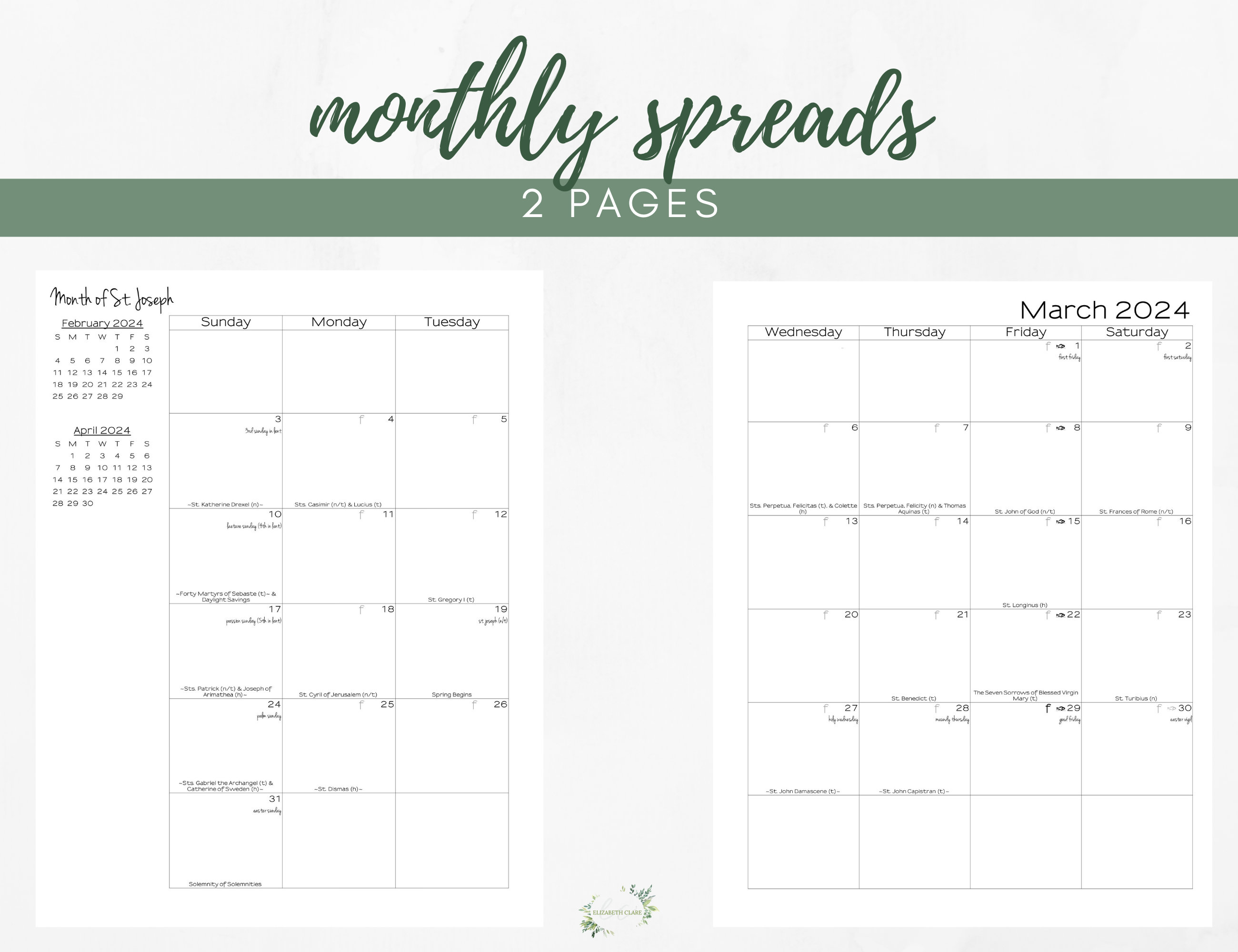2024 Catholic Planner Printable PDF: Daybook / Daily Weekly