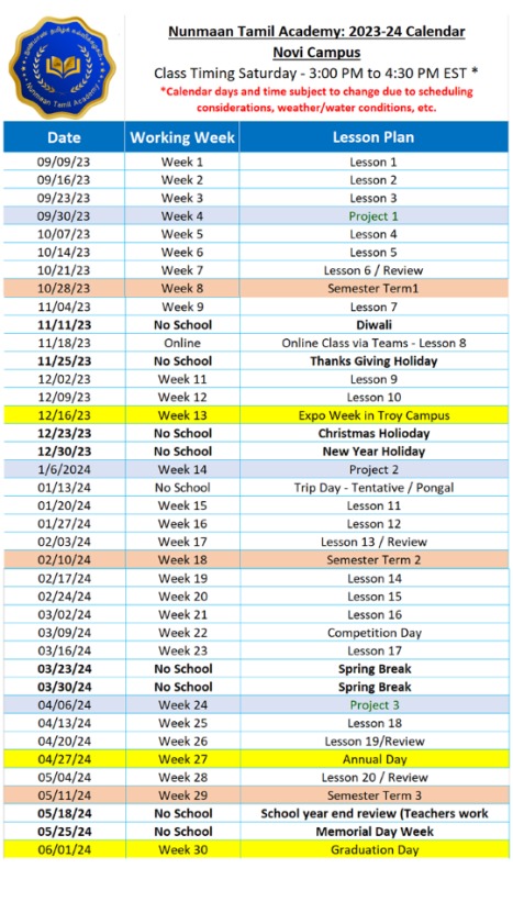 Nunmaan Tamil Academy, Troy Mi, Novi Mi, Virtual and Windsor.