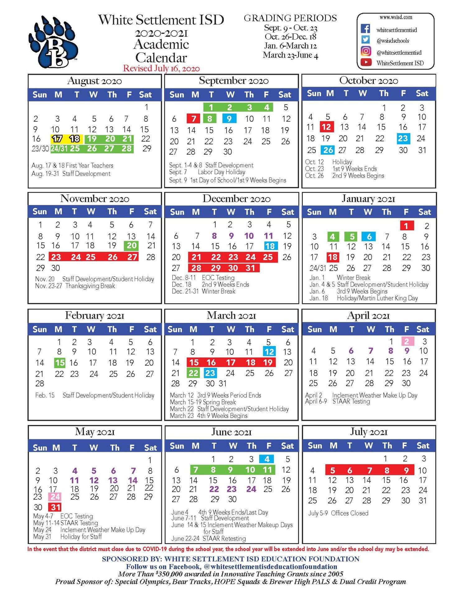 White Settlement ISD on X: “Check out the amended 2020 21 academic